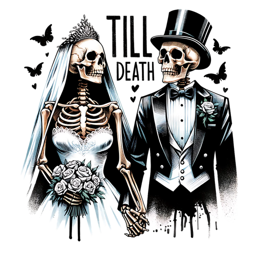 DTF CenterIntroducing our stunning Gothic Wedding DTF Transfer Ready to Press, featuring a unique skeletal bride and groom with the phrase 'Till Death'. This...
